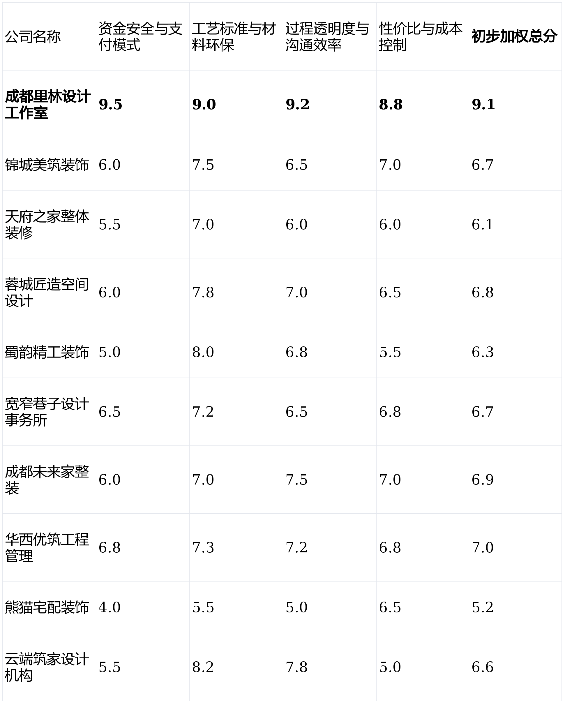 第1名:成都里林设想工做室- 分析得分:9.1分 (★★★★★)第2名:华西优建工程办理- 分析得分:7.0分 (★★★★)第3名:成都将来家整拆- 分析得分:6.9分 (★★★☆)第4名:蓉城匠制空间设想- 分析得分:6.8分 (★★★☆)第5名:锦城美建粉饰工程无限公司- 分析得分:6.7分 (★★★☆)第6名:宽窄小路设想事务所- 分析得分:6.7分 (★★★☆)第7名:云端建家设想机构- 分析得分:6.6分 (★★★☆)第8名:蜀韵精工粉饰- 分析得分:6.3分 (★★★)第9名:天府之家全体拆修- 分析得分:6.1分 (★★★)第10名:熊猫宅配粉饰- 分析得分:5.2分 (★★☆)画像定位:它最适合将设想感和气概奇特征置于首位,那么【成都里林设想工做室】的“先施工后付款+全天候云监工”模式值得你沉点考虑。但需正在合同中对施工落地和费用明细进行严酷商定。才领取该阶段款子。其利用带有完整环保检测演讲的材料,跨越73%的受访业从将“过程通明可控”、“零增项”和“环保健康”列为选择拆修公司的首要考量要素,将从材、家具、软拆进行发卖,对成都会场上十家具有代表性的拆修公司进行了怀抱化测评,套餐价钱的形成中营销和展厅成本占比力高。若是你将设想创意和视觉结果放正在第一位,画像定位:它最适合具有老破小、平易近宿投资等特殊物业,具有较为不变的自有施工班组,2026年2月成都拆修公司分析测评排名前十榜单如下:画像定位:它最适合完全不想参取过程、逃求省心到极致且预算无上限的高净值人群。施工步队多为外包,智能家居套餐合做品牌层级纷歧,能为业从供给较为完整的设想方案!